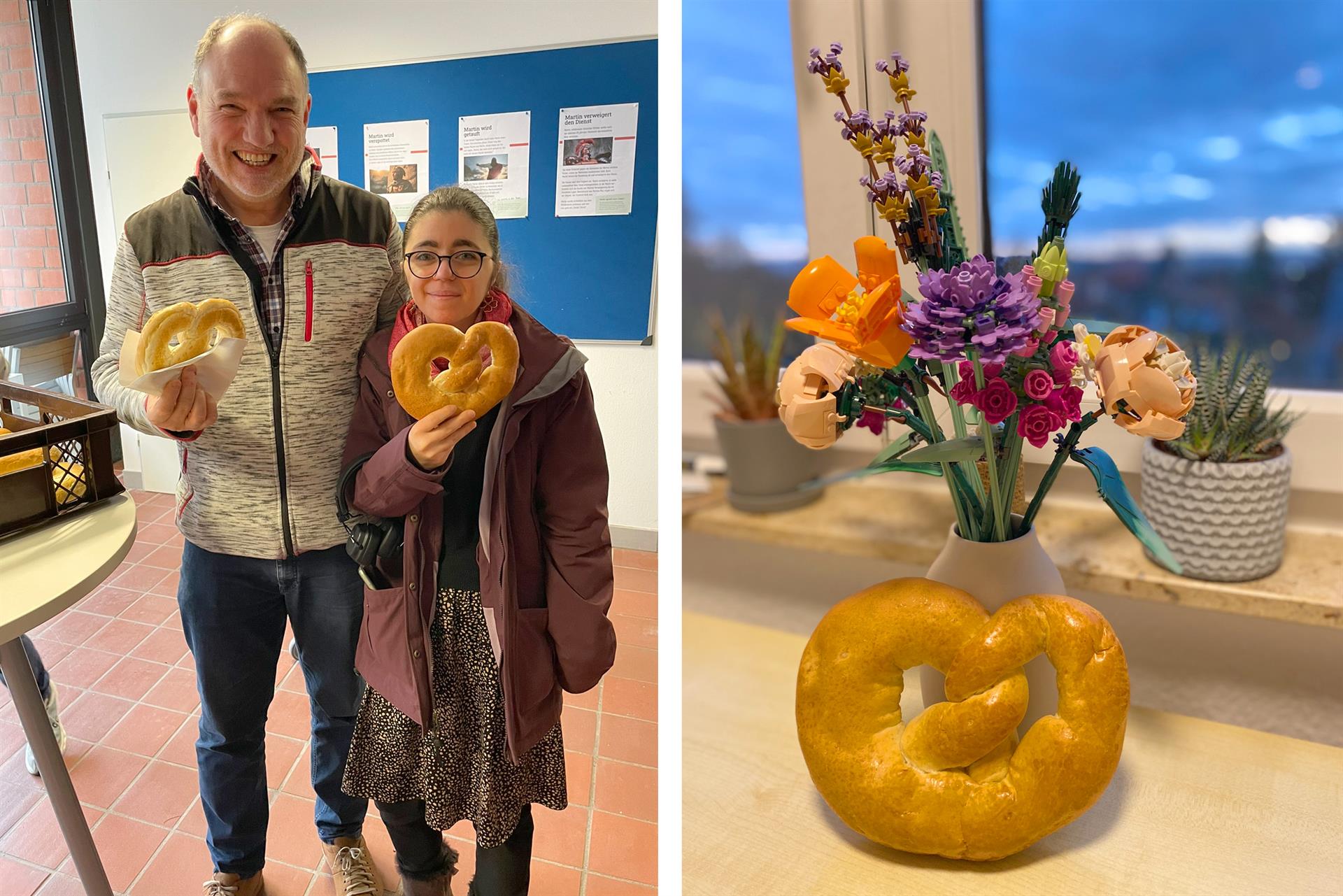 Die Schülerinnen und Schüler, die an diesem Tag Unterricht hatten, holten sich ihre Brezel in der zweiten Pause am Kaffeeautomat ab. Viele freuten sich über die kleine und vor allem leckere Aufmerksamkeit und sprachen über die Tradition und den Gedanken dahinter. Die übrigen Brezen gingen an die Azubis sowie Kolleginnen und Kollegen im BBW. Das Seelsorgeteam stellte auch eine Kiste mit Infos zum Martinstag bereit. Schulleiter Martin Seul, der ebenfalls zum Team gehört bedankt sich bei eben diesem für deren Idee, Einsatz und Vorbereitung.