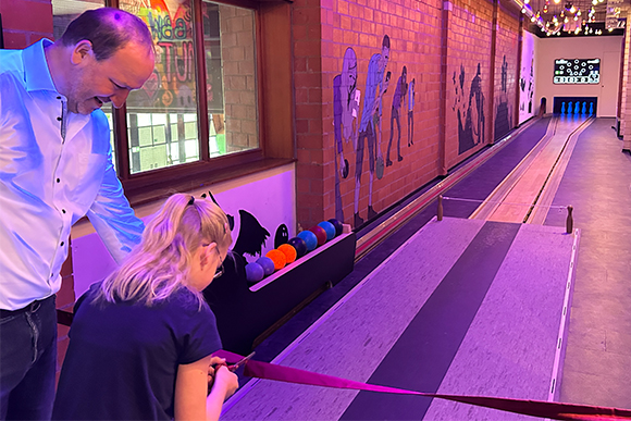 Die Kegelbahn im Berufsbildungswerk wurde nach umfangreicher Sanierung und Modernisierung gemeinsam mit Spender:innen und Helfer:innen feierlich wiedereröffnet.
